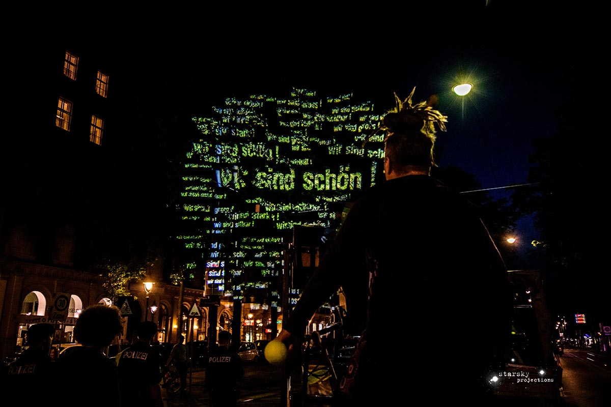zu den waffeln ! wir worten zurück !! projektions guerilla tour wien 2018 projektion : starsky foto : osaka